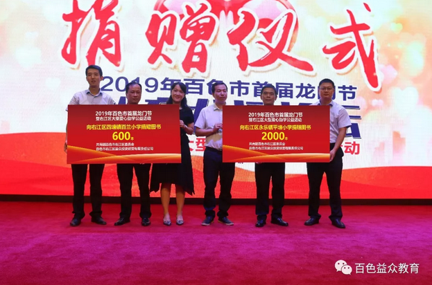 論壇還進(jìn)行了圖書捐贈儀式,捐贈的圖書來自于龍門節(jié)另一個(gè)公益活動—龍門書友會活動,所有捐贈圖書均來自于同學(xué)們置換的閑置書籍。置換的書籍統(tǒng)一由共青團(tuán)百色市右江區(qū)委員會捐贈給右江區(qū)偏遠(yuǎn)的貧困小學(xué),捐贈書本數(shù)量以在校學(xué)生人數(shù)為依據(jù)。本次龍門書友會共置換到圖書約9000本,當(dāng)天作為獲贈方代表,右江區(qū)永樂鎮(zhèn)平塘小學(xué)和右江區(qū)四塘鎮(zhèn)百蘭小學(xué)校長出席論壇并接受圖書捐贈。這不僅是一次知識的傳遞,更是一次愛心的流動。