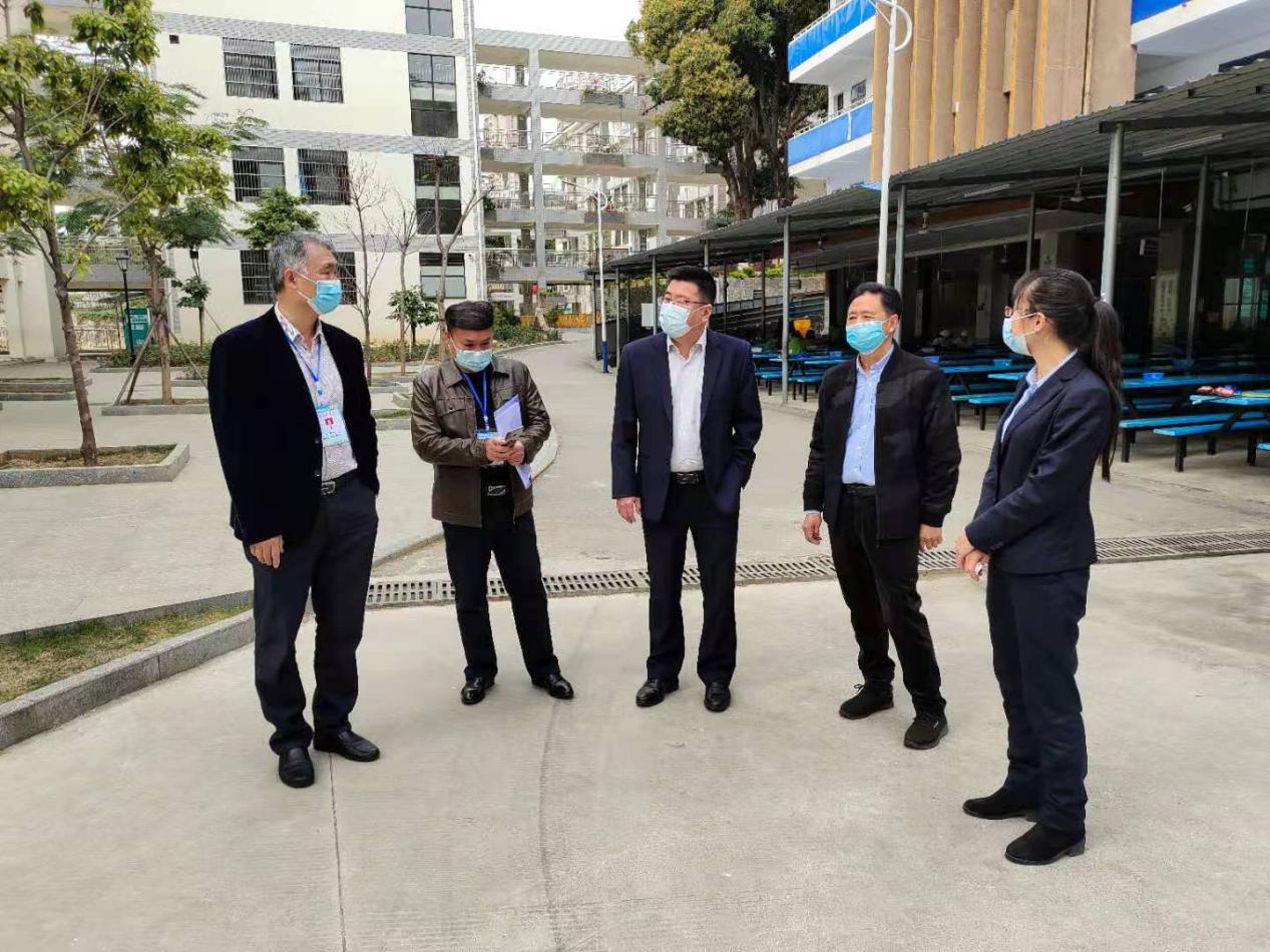 ????????3月2日,2021年春季學期開學第一天,右江區(qū)教育局到益眾托管濱江小學校區(qū)檢查學生托管安全工作開展情況,濱江小學校領導、益眾托管公司有關負責同志陪同檢查。