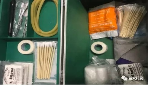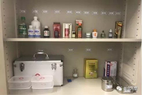 醫(yī)療環(huán)境的升級包括醫(yī)藥柜升級和衛(wèi)生宣傳教育升級。在醫(yī)藥柜中,我們準(zhǔn)備了清創(chuàng)、燙傷、扭傷、物理退燒等外用藥品和用于止血、清創(chuàng)、固定等功能的急救箱。