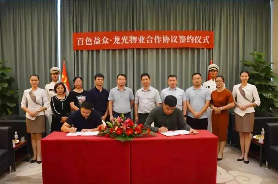 ????????雙方就共同設立的合作經(jīng)營公司——廣西龍光益眾物業(yè)服務有限公司達成了合作意向。雙方公司代表簽署了合作協(xié)議,雙方領(lǐng)導共同見證了合作的起點。