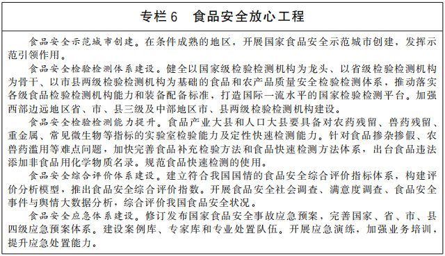 健全食品安全風險防控機制。進一步強化食品安全風險監(jiān)測評估對監(jiān)督管理的科學支撐,加強風險監(jiān)測和監(jiān)督管理各環(huán)節(jié)的信息化平臺建設和信息共享。面向醫(yī)院、學校、托育機構等重點場所,科學布局食品安全風險監(jiān)測點,提升風險監(jiān)測覆蓋面和問題發(fā)現(xiàn)率。聚焦執(zhí)法、司法重點難點問題,提高食品安全檢驗檢測和技術鑒定能力。加快重點品種食品安全信息化追溯體系建設,鼓勵生產(chǎn)經(jīng)營企業(yè)、行業(yè)協(xié)會和第三方平臺向政府信息平臺開放數(shù)據(jù)。深化食品安全抽檢制度改革,明確監(jiān)督抽檢、風險監(jiān)測與評價性抽檢的功能定位,以功能為導向優(yōu)化實施機制,推進“你點我檢”“你送我檢”常態(tài)化,強化抽檢監(jiān)測的隱患排查和風險管控作用。穩(wěn)步實現(xiàn)農產(chǎn)品和食品抽檢量每年5批次/千人目標,其中種養(yǎng)殖環(huán)節(jié)抽檢量每年2批次/千人。依托現(xiàn)有資源加強職業(yè)化食品安全檢查員隊伍建設,完善相應技術職務體系,提高檢查人員專業(yè)技能。加強食品安全風險預警交流體系建設。加大農產(chǎn)品質量安全風險評估力度。強化食品和農產(chǎn)品安全突發(fā)事件應急處置,提升應急響應、現(xiàn)場處置、醫(yī)療救治能力。