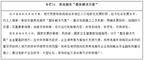 各省(自治區(qū)、直轄市)要根據(jù)人口老齡化發(fā)展形勢(shì),制定實(shí)施專項(xiàng)規(guī)劃,加強(qiáng)與相關(guān)規(guī)劃銜接。各級(jí)老齡工作委員會(huì)要發(fā)揮統(tǒng)籌協(xié)調(diào)作用,推動(dòng)老齡工作委員會(huì)各成員單位履職盡責(zé),形成工作合力。發(fā)揮養(yǎng)老服務(wù)聯(lián)席會(huì)議制度作用,推進(jìn)養(yǎng)老服務(wù)體系建設(shè),強(qiáng)化區(qū)域養(yǎng)老服務(wù)資源統(tǒng)籌管理。支持城市群、都市圈打造養(yǎng)老服務(wù)體系一體化建設(shè)格局,形成服務(wù)能力銜接、產(chǎn)業(yè)發(fā)展協(xié)同的合作區(qū)域。支持大型城市和區(qū)域中心城市推動(dòng)養(yǎng)老產(chǎn)業(yè)集聚發(fā)展,充分發(fā)揮輻射帶動(dòng)和示范作用。推動(dòng)以地級(jí)行政區(qū)為單位制定“整體解決方案”,將老齡事業(yè)發(fā)展和養(yǎng)老服務(wù)體系建設(shè)納入經(jīng)濟(jì)社會(huì)發(fā)展全局中通盤考慮,全方位整合資源力量,充分調(diào)動(dòng)各方積極性,推動(dòng)兜底性、普惠型、多樣化三種路徑協(xié)同發(fā)展。