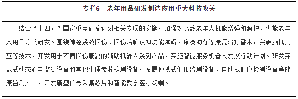 強(qiáng)化老年用品的科技支撐。加快推進(jìn)互聯(lián)網(wǎng)、大數(shù)據(jù)、人工智能、第五代移動(dòng)通信(5G)等信息技術(shù)和智能硬件在老年用品領(lǐng)域的深度應(yīng)用。支持智能交互、智能操作、多機(jī)協(xié)作等關(guān)鍵技術(shù)研發(fā),提升康復(fù)輔助器具、健康監(jiān)測(cè)產(chǎn)品、養(yǎng)老監(jiān)護(hù)裝置、家庭服務(wù)機(jī)器人、日用輔助用品等適老產(chǎn)品的智能水平、實(shí)用性和安全性,開展家庭、社區(qū)、機(jī)構(gòu)等多場(chǎng)景的試點(diǎn)試用。